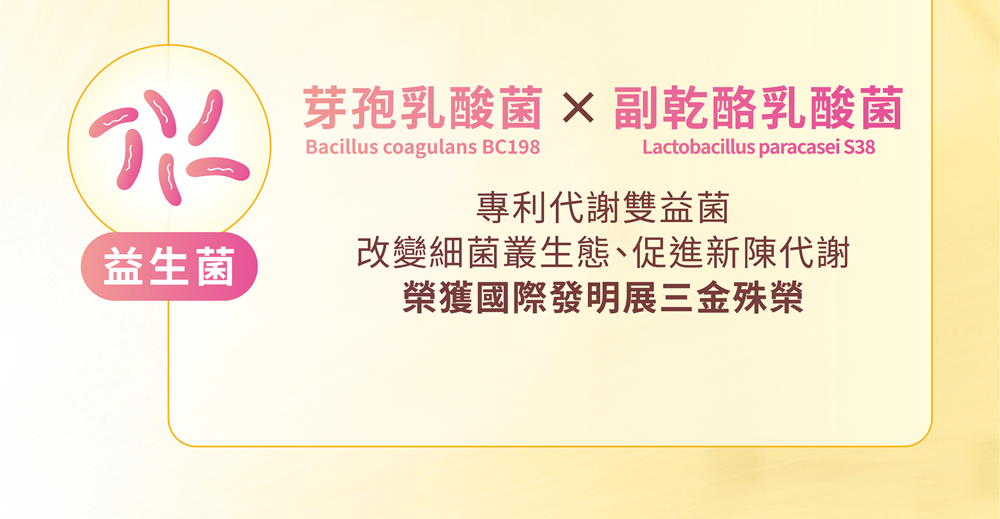 • 芽孢乳酸菌+副乾酪乳桿菌 | 互相接力調整菌叢環境