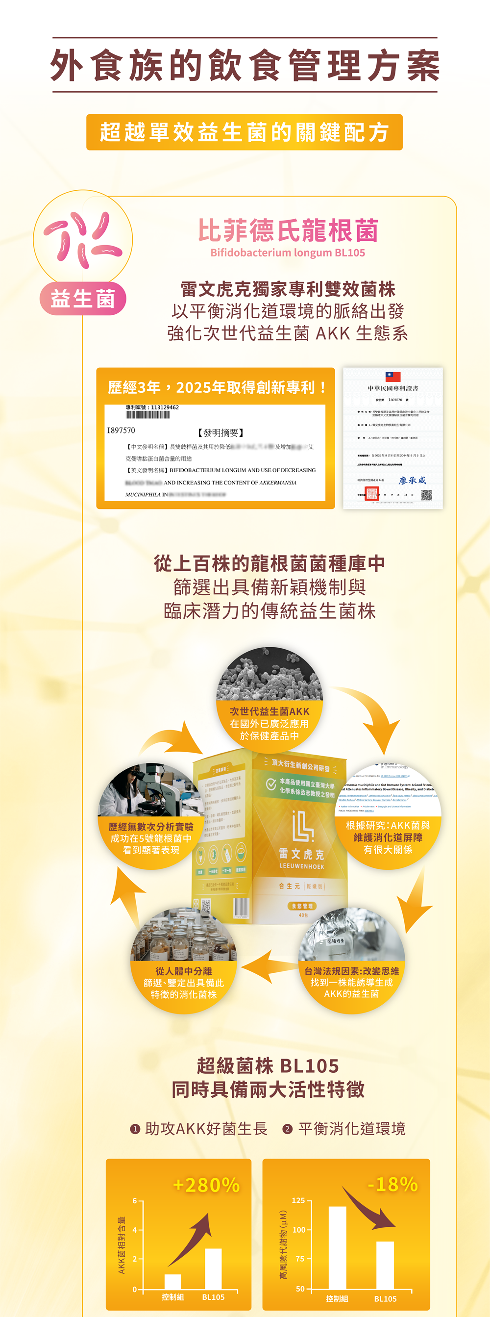 • 龍根菌 BL105 | 雷文虎克創新專利,助攻AKK好菌生長